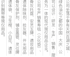 公司秉承“質量為本、我們要做的是唯一、而不是第一”的經營服務理念,堅持以誠信為先、服務至上、創(chuàng)新發(fā)展為立業(yè)之本,以鄭重的承諾和完善的服務為信譽保證,不斷專研、開發(fā)、生產出盡善盡美的高科技殯儀產品...